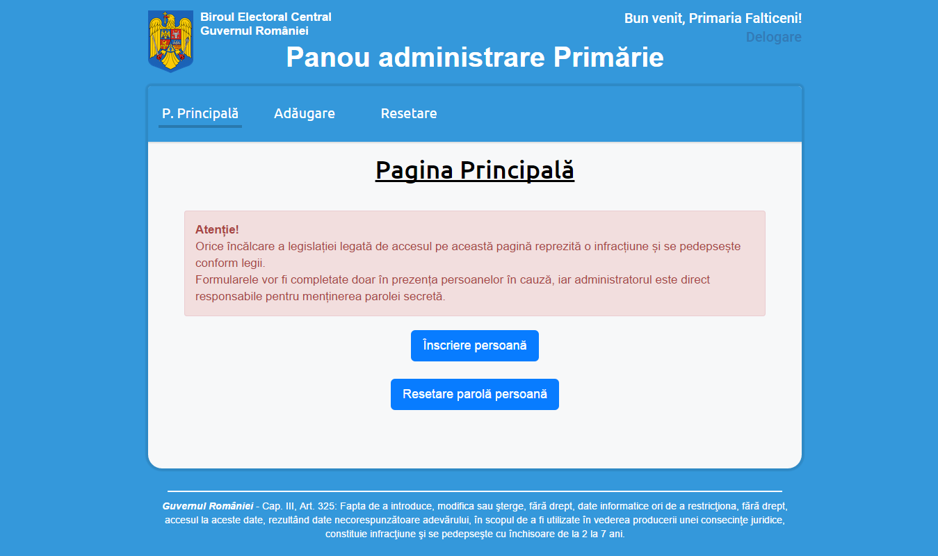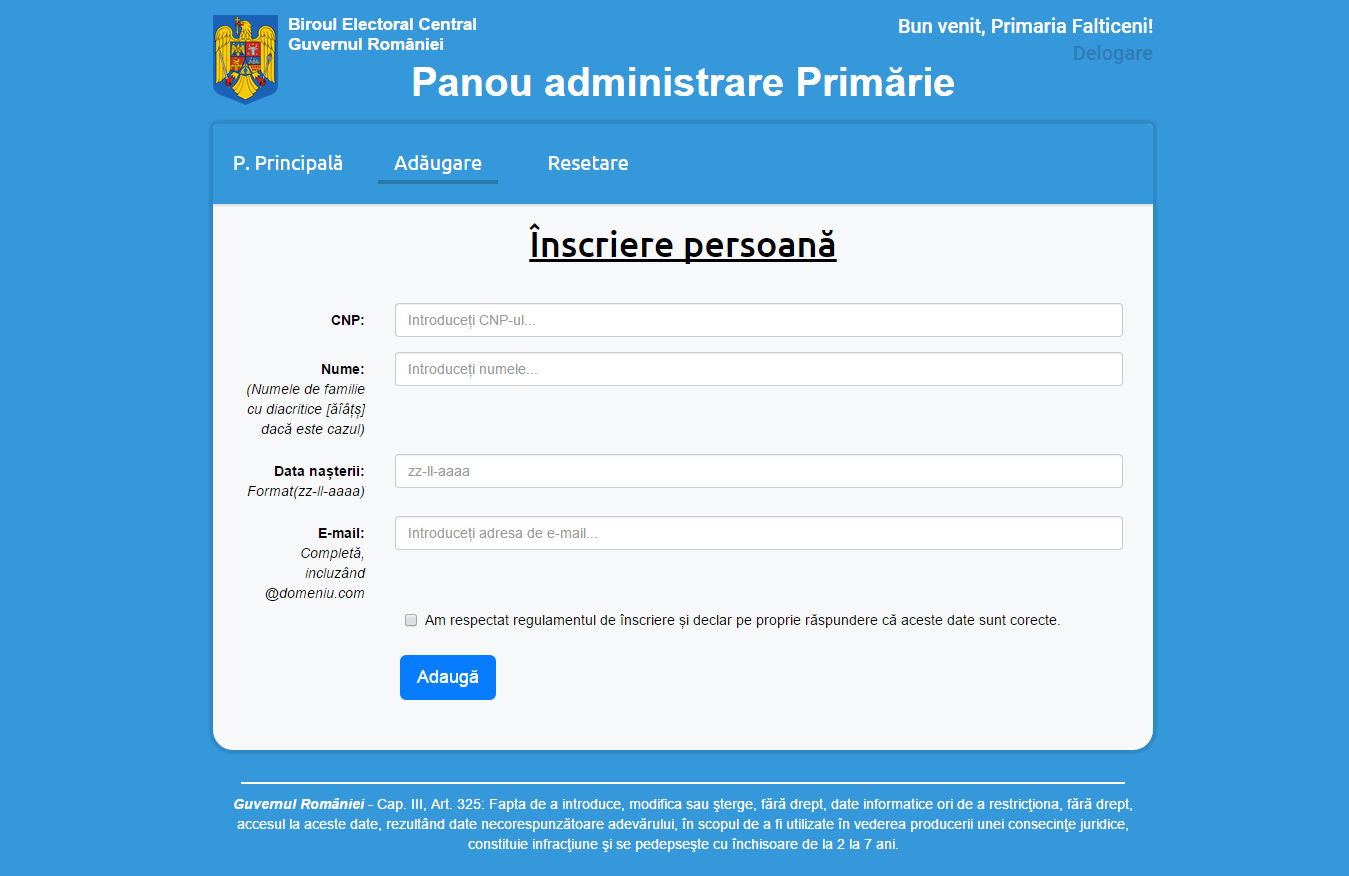 Personalul angajat la primărie are obligația de a înregistra datele despre cetățean pe platformă, în prezența cetățeanului în cauză. Contul va fi definitiv și valabil pentru orice sesiune de alegeri.