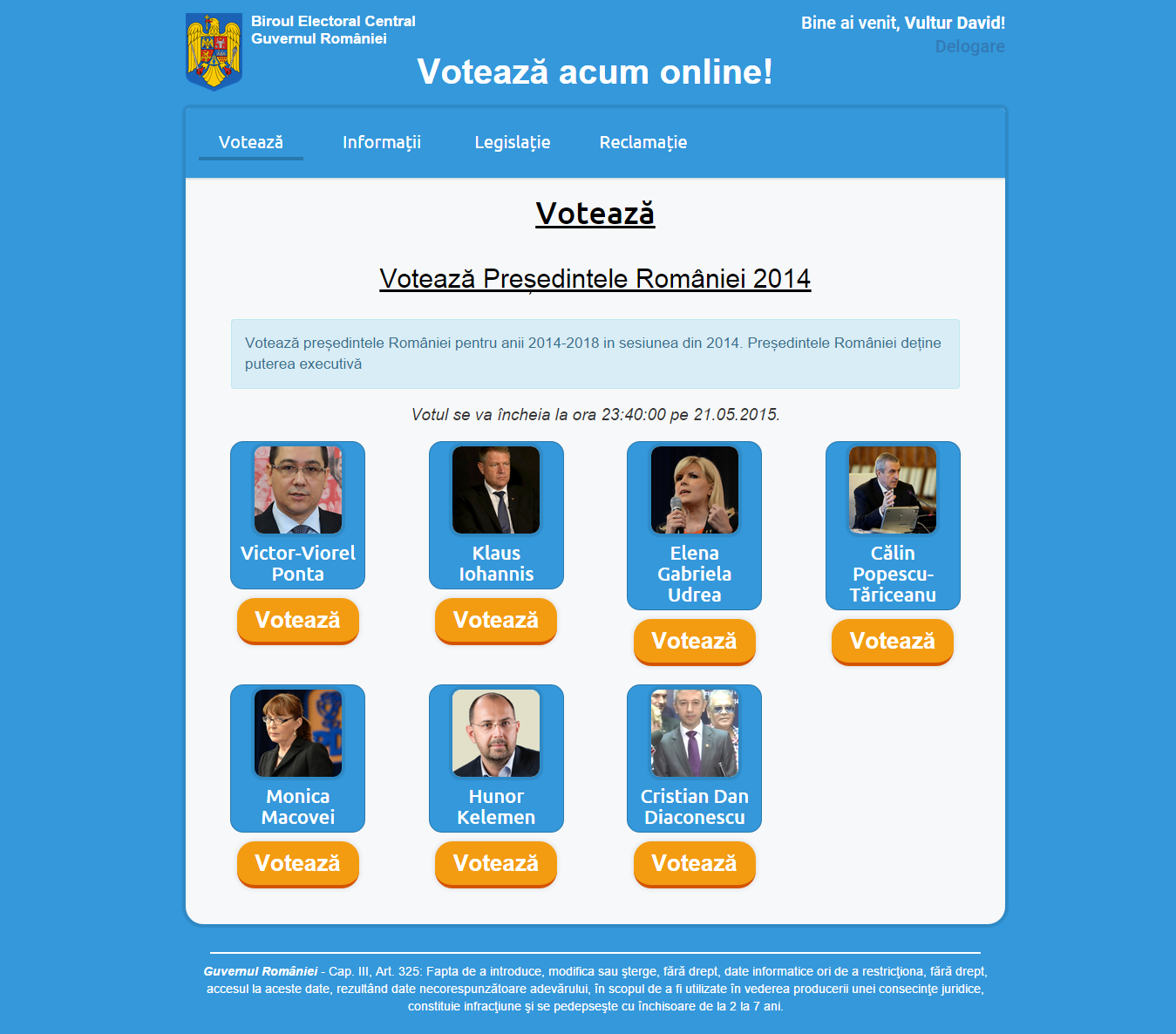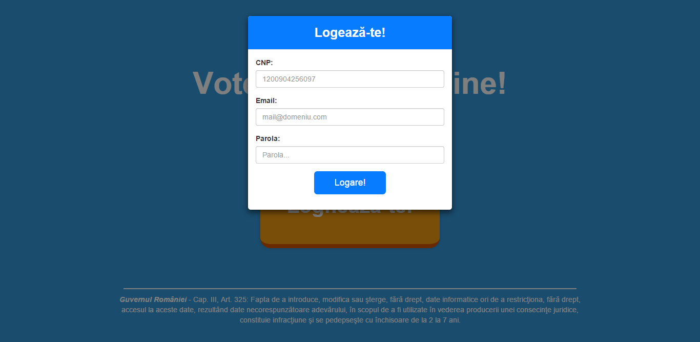 Aceasta este doar o pagină de prezentare a unui proiect pentru votul electronic... | Autor: Vultur David |